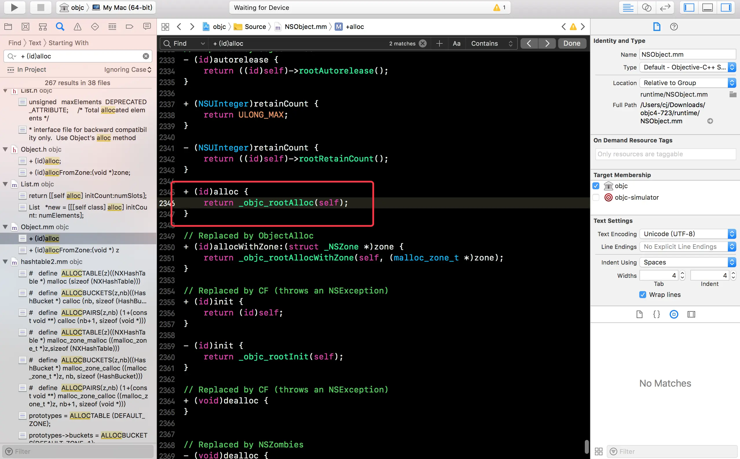 在刚刚下载的源码中搜索 alloc,找到 alloc 的实现: