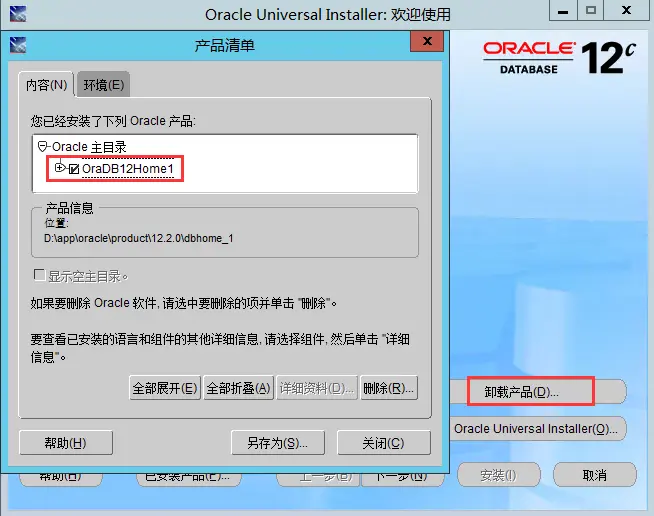 以管理员身份运行 Universal Installer,然后点击卸载产品,在弹框中勾选 Oracle 主目录,最后点击删除即可。