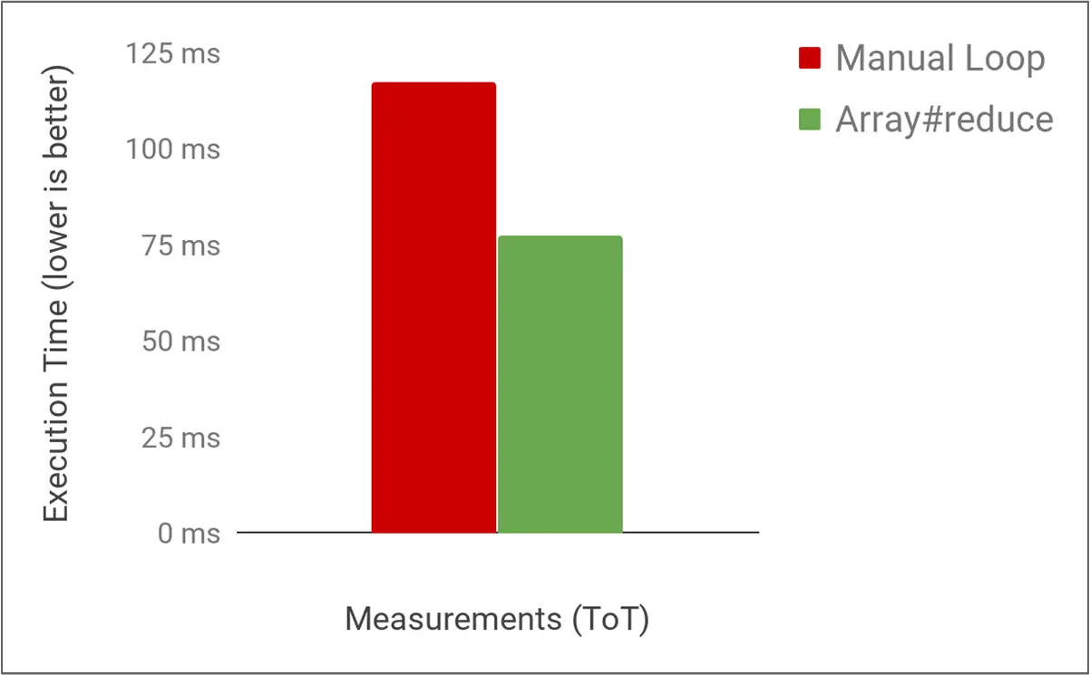 不过一年半过去了,V8 引擎也有了很大的改进,其中就包括了对数组高阶函数的性能改进,并取得了很好的效果。