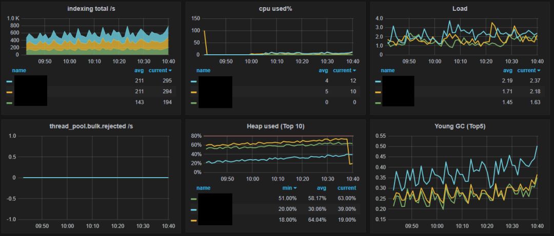 技术中心专门为业务部门开发了一套监控系统。它会周期性的调用所有服务器的Elastic Search CAT API,把性能数据保存在单独的Elastic Search服务器中,同时提供一个网页给应用负责人进行数据的监控。