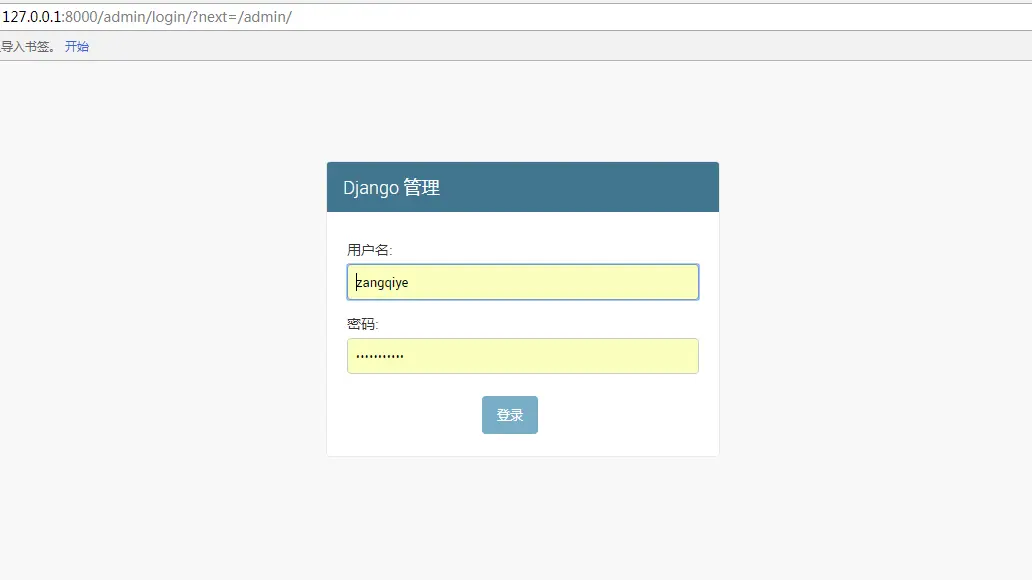 6 启动项目,访问http://127.0.0.1:8000/admin,界面如下