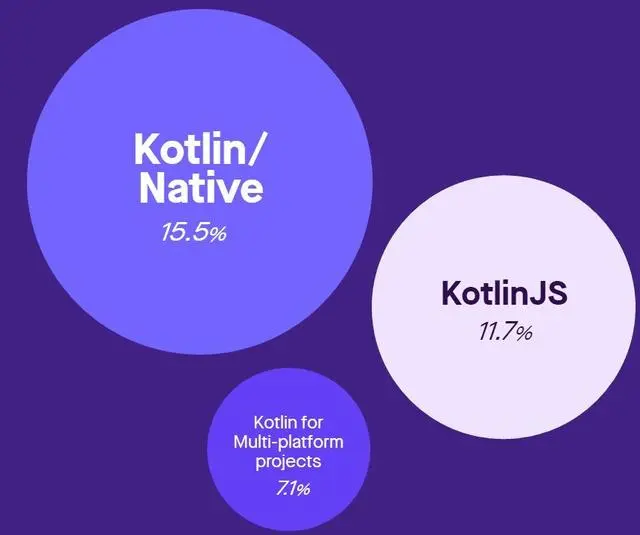 跨平台 Kotlin 正在复苏,但速度较为缓慢。只有约四分之一的受访者提到他们运用了一些跨平台支持,大多数选择 Kotlin / Native,其次是 KotlinJS。