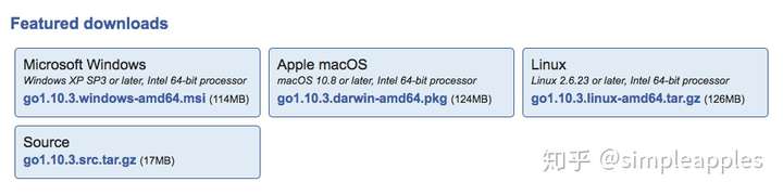 Golang的官网是golang.org/,如果官网打不开,可以访问 golang.google.cn/这个域名。在官网点击Download Go会进入下载页,可以看到这里提供了针对各个系统的安装包,也提供了源码,可以下载源码编译安装。