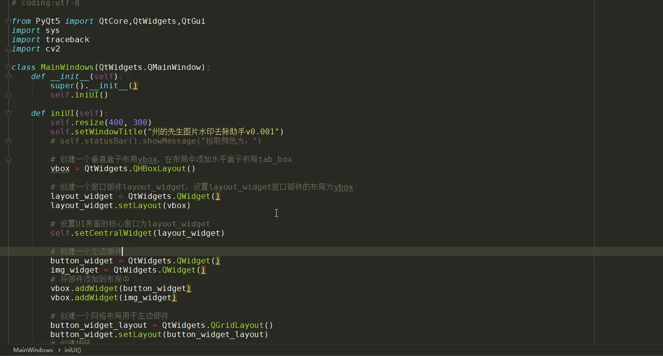 上面的代码快速地实现了天猫文字水印的去除,但是作为代码本身就不方便传播和使用。索性借助于PyQt5,我们将其打包为一个桌面图形界面程序。