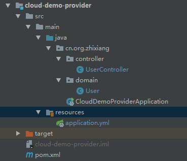 2.创建cn.org.zhixiang包,创建CloudDemoConsumerApplication类。不同于提供者的是,这次启动类中需要增加一段代码