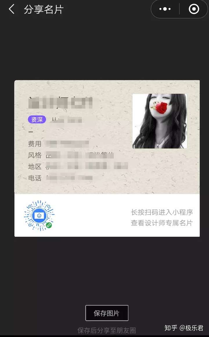 最后,利用Painter工具可以生成不同样式的朋友圈分享图(下图为微信小程序 酷咖名片 线上版部分截图)
