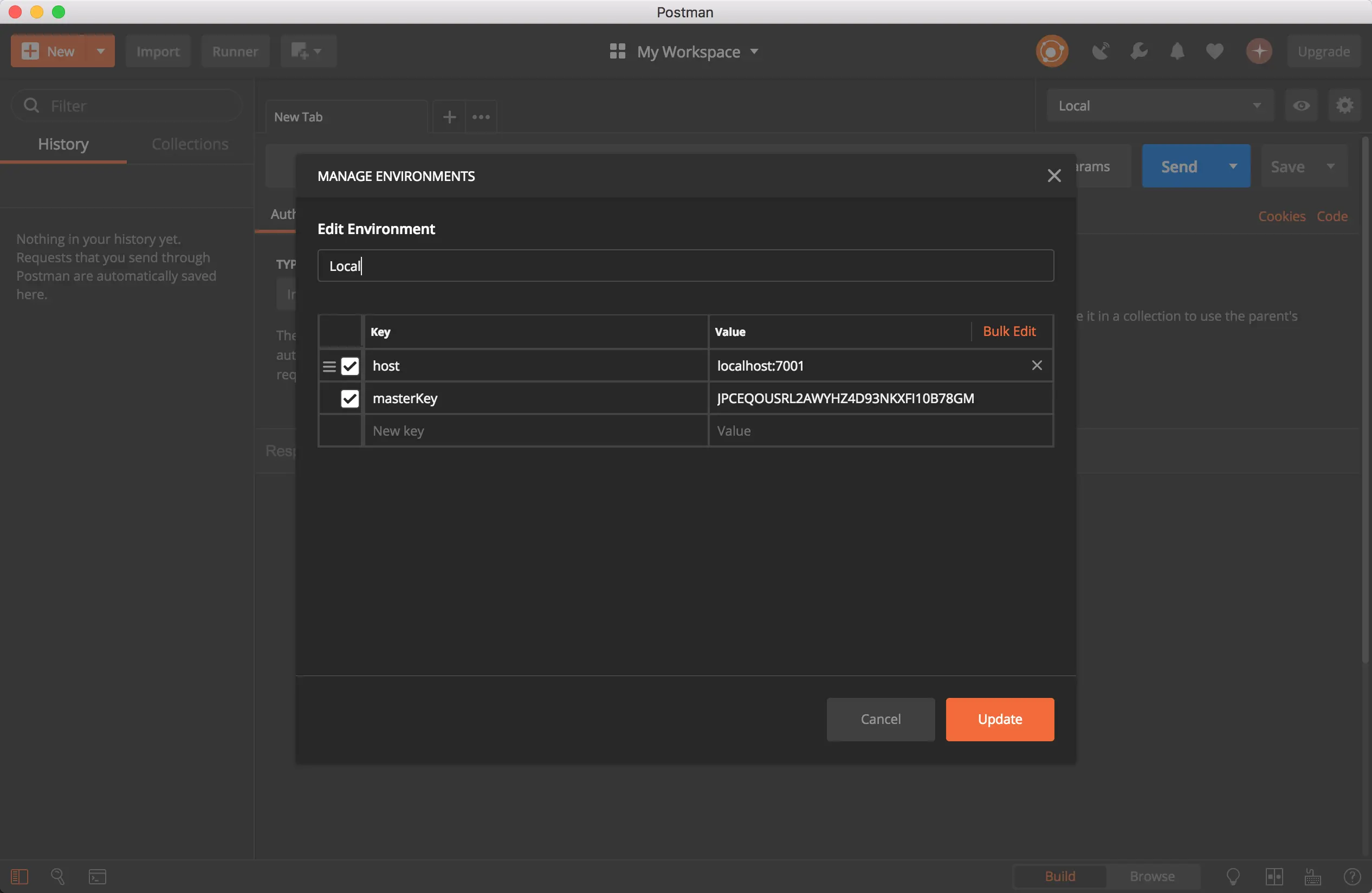 为了方便后续的测试,我们先把Host和MasterKey添加到环境变量中: