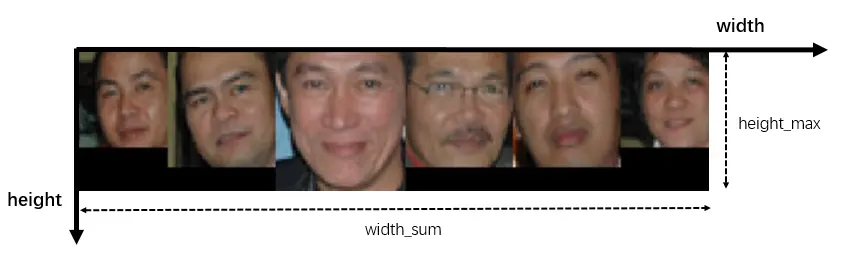 第一次遍历:多张人脸要输出到一行,所以先进行一次人脸的遍历j记下每张人脸的大小,记每张人脸的尺寸为 高度height *宽度width(高度和宽度说明见图3):