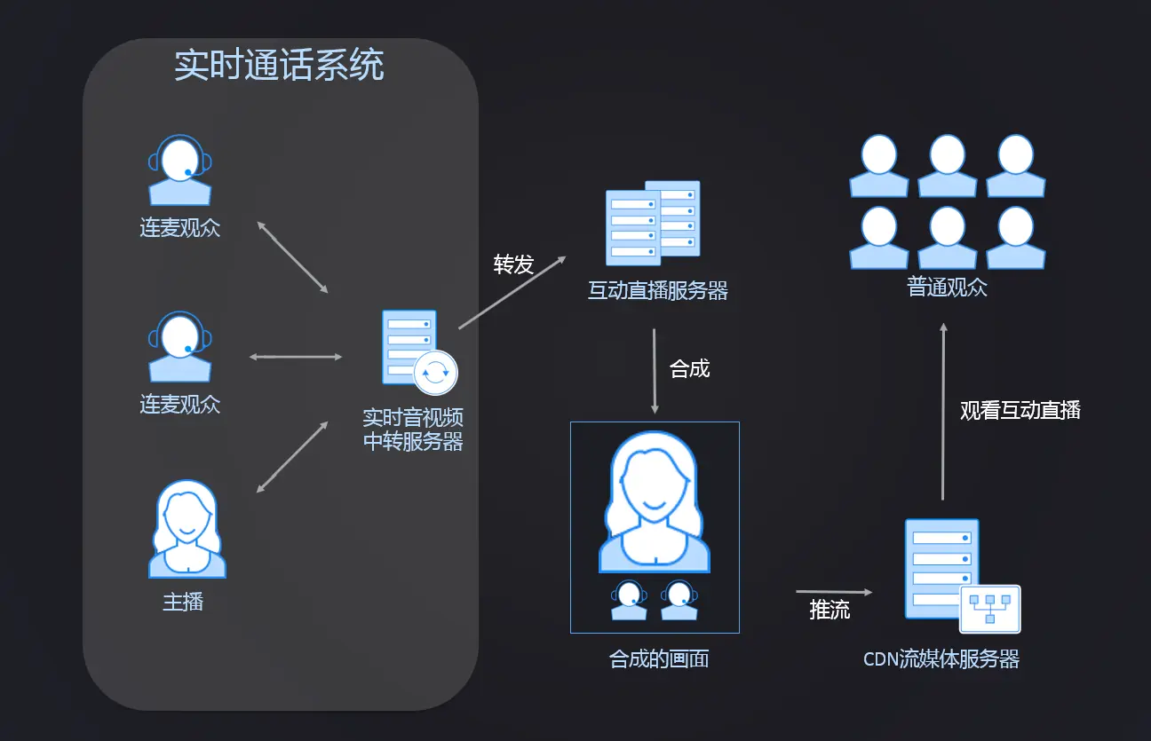 互动直播服务器的要点主要是:融合实时系统与直播系统;实时处理视频的合成;保证互动同步性以及高性能硬件。