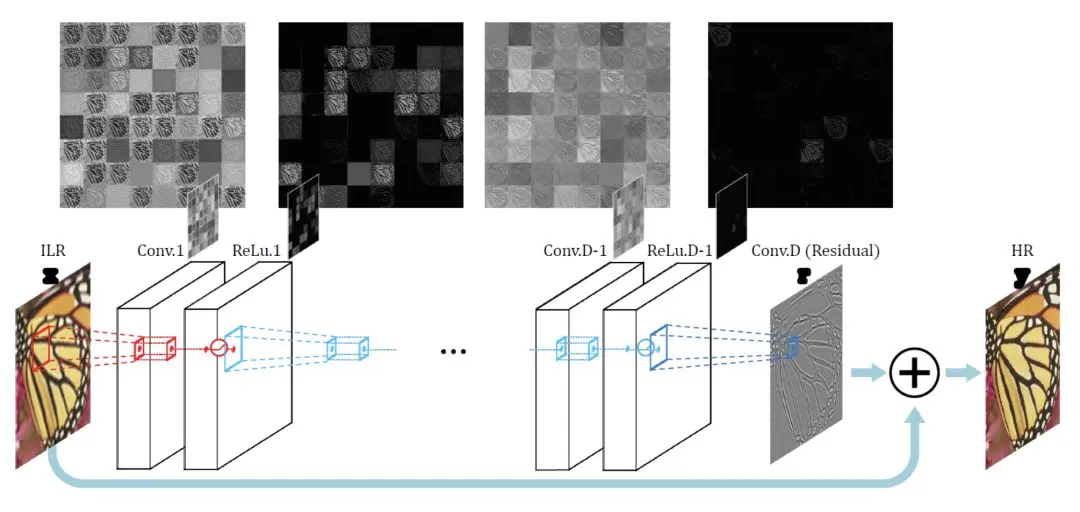 所以它的输入分为两部分,一是将整张原图作为一个输入,另一部分则是对残差进行训练然后得到一个输入,将两者加起来就得到一张高分辨率图像。这样就大大加快了训练速度,收敛效果也更好。