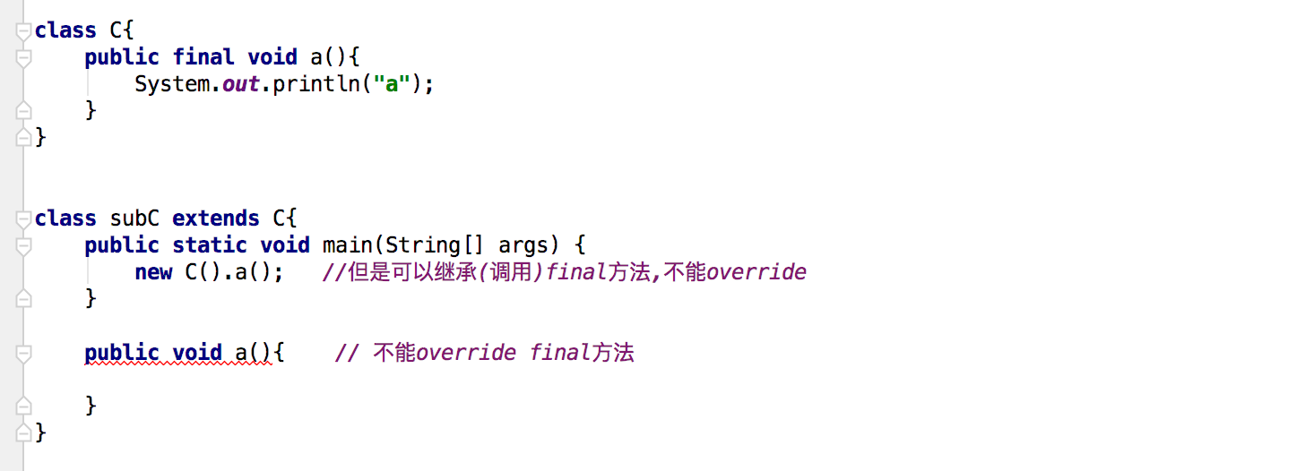 使用private,static,final(都是不能被子类重写的方法修饰符)修饰的方法,使用静态绑定,而虚方法(可以被子类override的方法)根据运行时的对象进行动态绑定