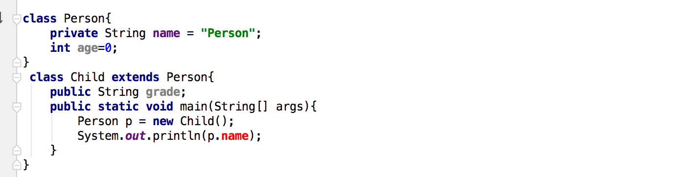 name为private属性, 属于静态绑定,在编译期间完成静态绑定,所以会在编译期间发现错误,而不是运行期间