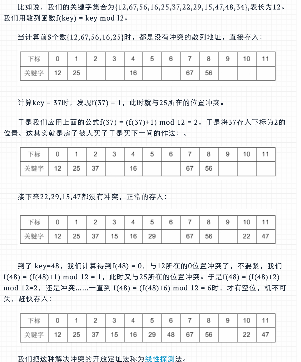 开放地址法: 如果hash之后冲突,则通过探测算法,寻找空的地址(开放地址)