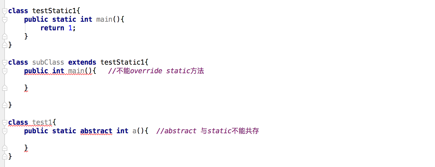 对于static方法,子类是不能override的,而abstract有要求子类必须override,矛盾