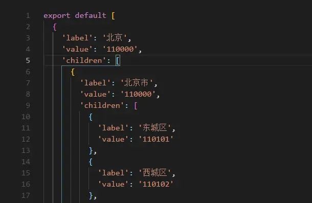 今天写省市区三级联动,用到iView框架Cascader级联选择,没有合适的格式,自己手写了一个