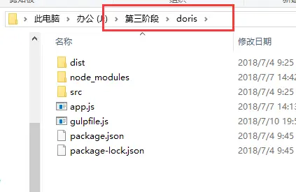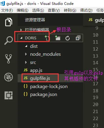 4、这里注意路径,根目录最好是“爸爸”级别,避免后面执行任务的时候忽略了路径报错;注意gulpfiles.js文件名字不能改,必须这样写,主要是拿来引用gulp的任务以及执行任务(怎样执行任务,我在其他文章中总结了二种方法,供参考https://blog.csdn.net/weixin_36706903/article/details/80990568)