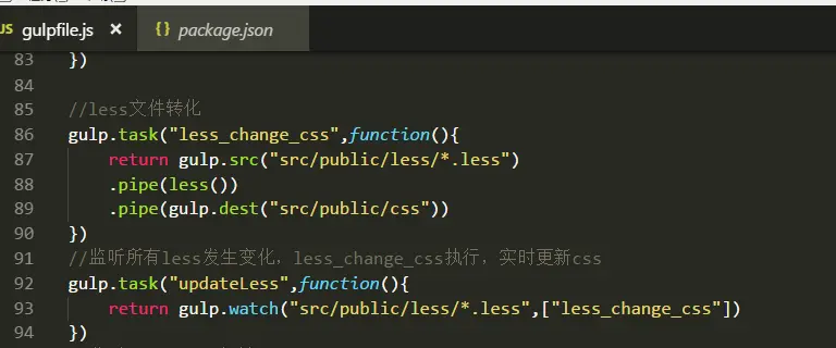 当我less文件夹中任何一个less结尾的文件发生了改变,就执行我的第一个任务,即把我所有的less编译成css
