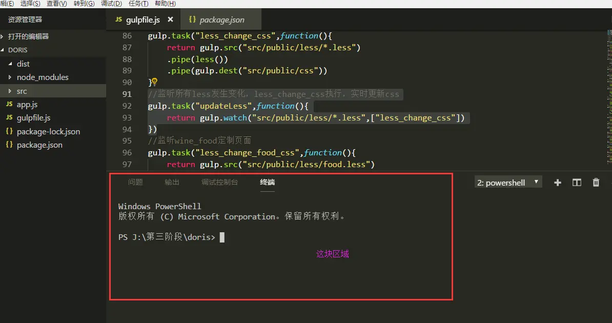 第1个任务目的:把静态资源里的less文件夹里的所有less用less()编译,然后管道输出到静态资源下的css文件
