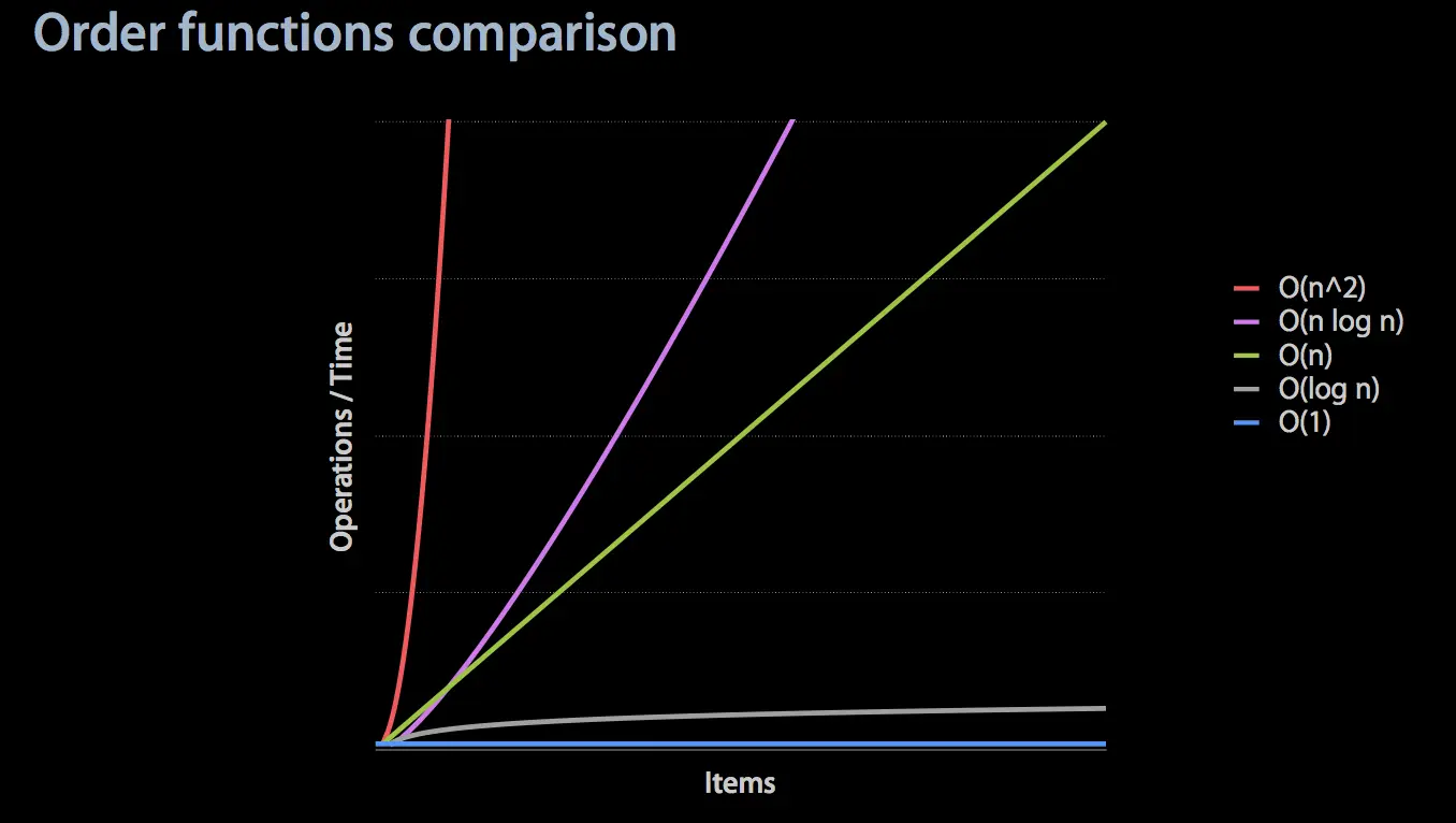 图中可以看出 O(n) 是个分水岭,大于它对于性能就具有很大的潜在影响,如果是个公共的接口一定要加上说明,自己调用也要做到心中有数。当然最好是通过算法优化或者使用合适的系统接口方法,权衡内存消耗争取通过空间来换取时间。