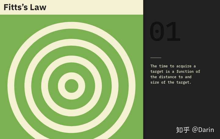 该法则基于心理学家保罗菲茨在1954年的研究,它定义了“快速移动到目标区域所需的时间是目标距离与目标宽度之间的比率的函数”。