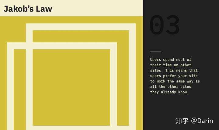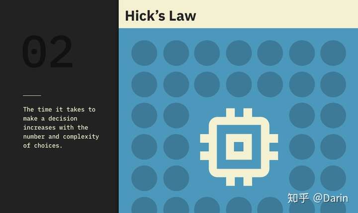 在“Laws of UX”网站中,每个法则都有自己的图形表现,其灵感来自极简主义书籍的经典封面,而不是简单地将它们作为列表收集,目标是帮助人们记住这些规律。