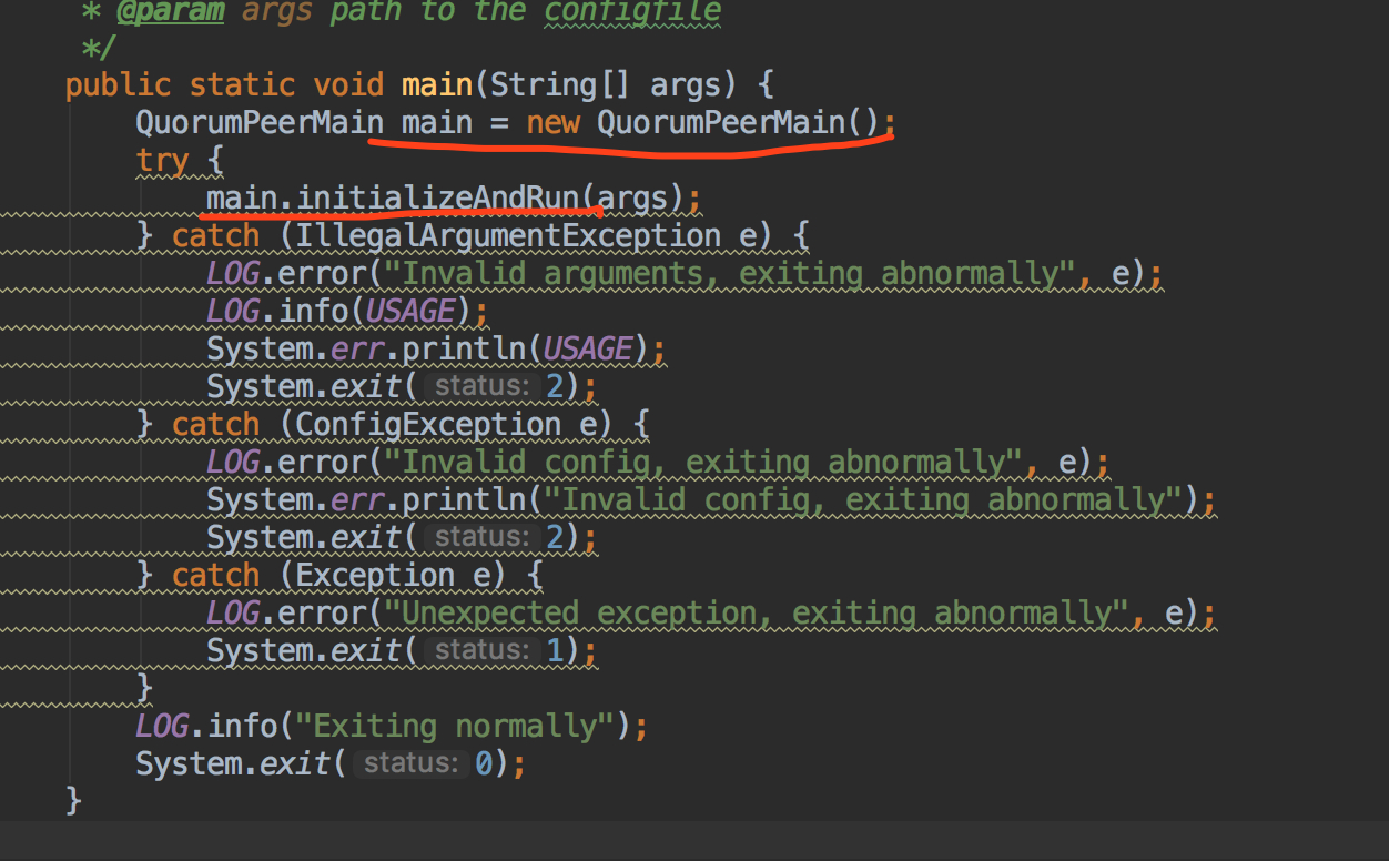 会发现他创建了一个QuorumPeerMain的实例并执行了其initializeAndRun方法