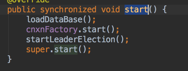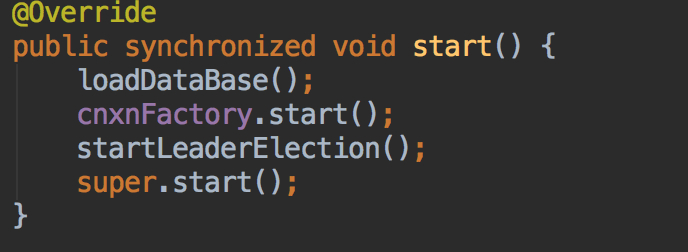 loadDataBase就恢复其自身数据库其实就是从本地文件中恢复数据,然后获取最新的zxid,关键是这里的startLeaderElection看到这个方法名,就知道了吧?在这里开始选举惹~