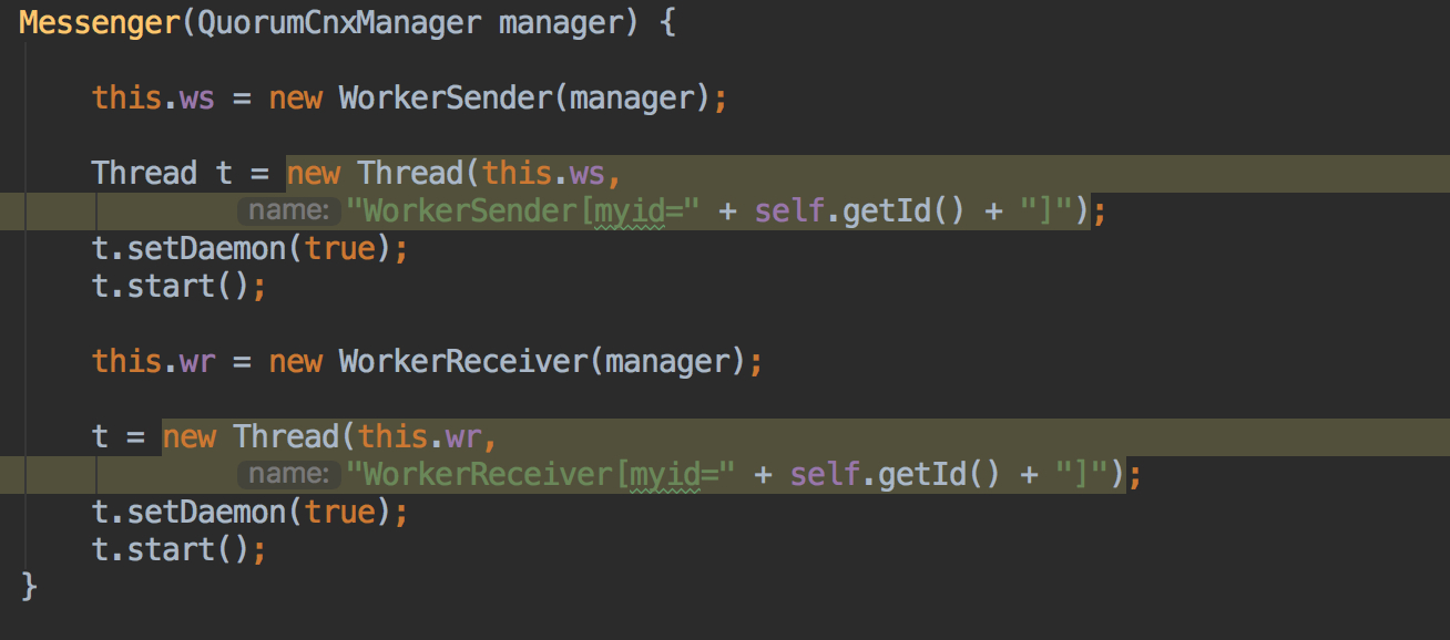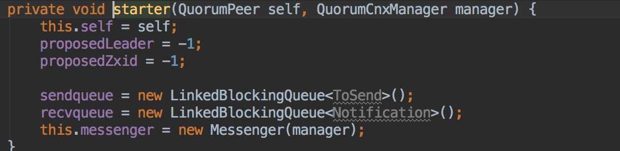 该构造函数中设置了发送队列和接收队列的线程,并启动线程,WorkSender是负责发送投票的,WorkerReceiver是负责接收投票的,再回到start来