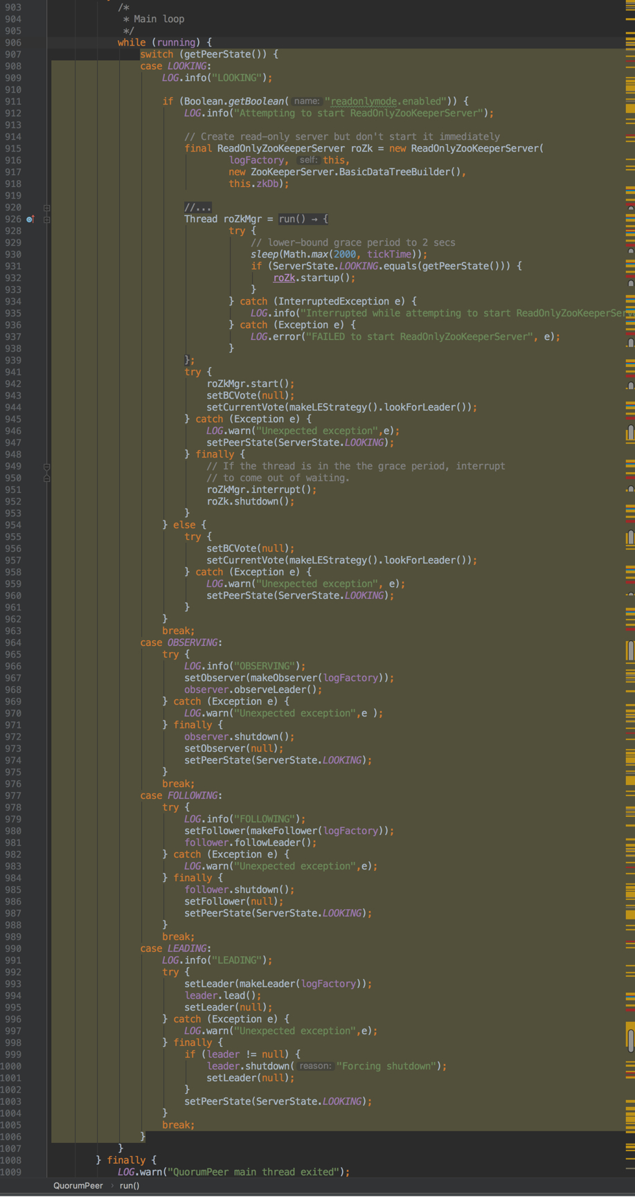 首先我们从一个具有main函数的QuorumPeerMain类开始,我们就以它为入口吧