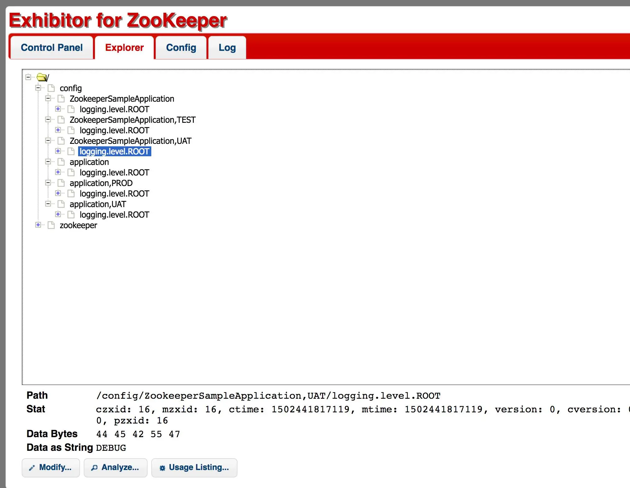 /config/ZookeeperSampleApplication,UAT/