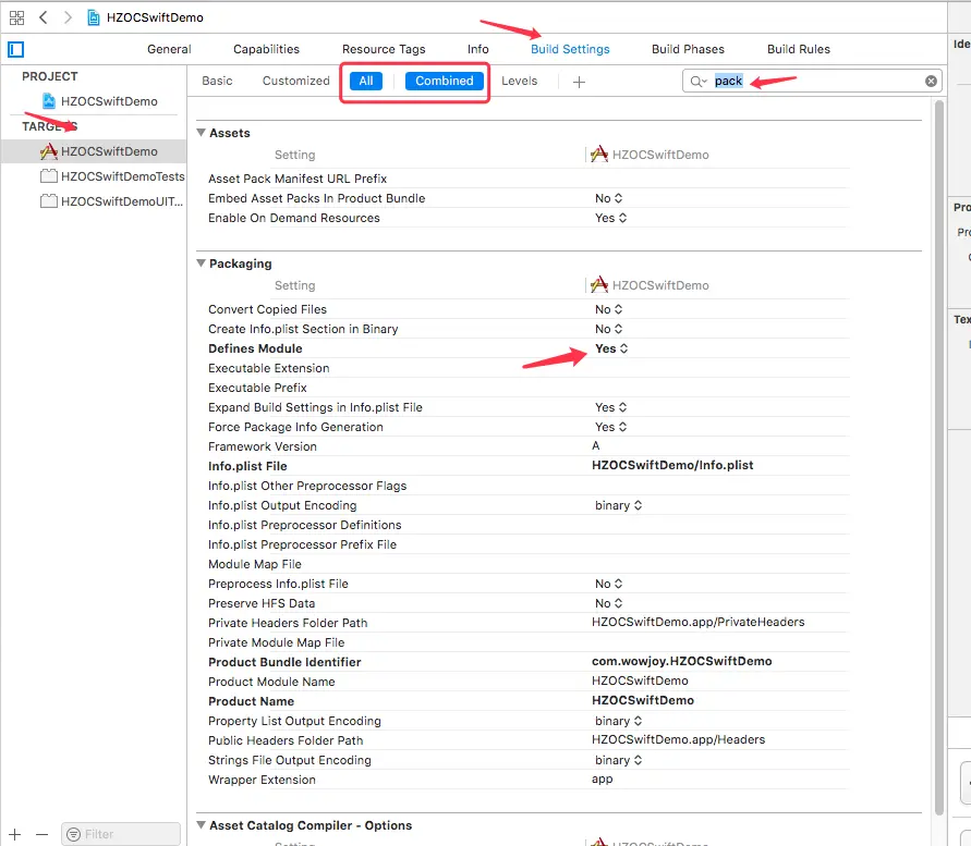 a.设置defines module 为Yes