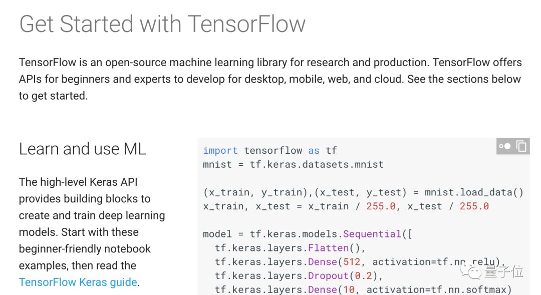 现在,TensorFlow的新手指南变了样,带领小白们从Keras入手,还附上了一个详细的Keras Guide。