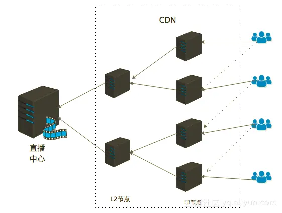 播放端(用户)从就近的L1节点完成播放,L1节点一般就是本地覆盖的边缘节点,如果机房内有这路视频流,就直接返回,如果没有,就从L2节点拉流,如果L2不命中,最终会去直播中心寻找这路流。这其中,任何的链路都会存在抖动状况,CDN会通过自动切换调度来保证稳定性。