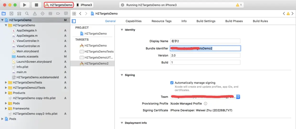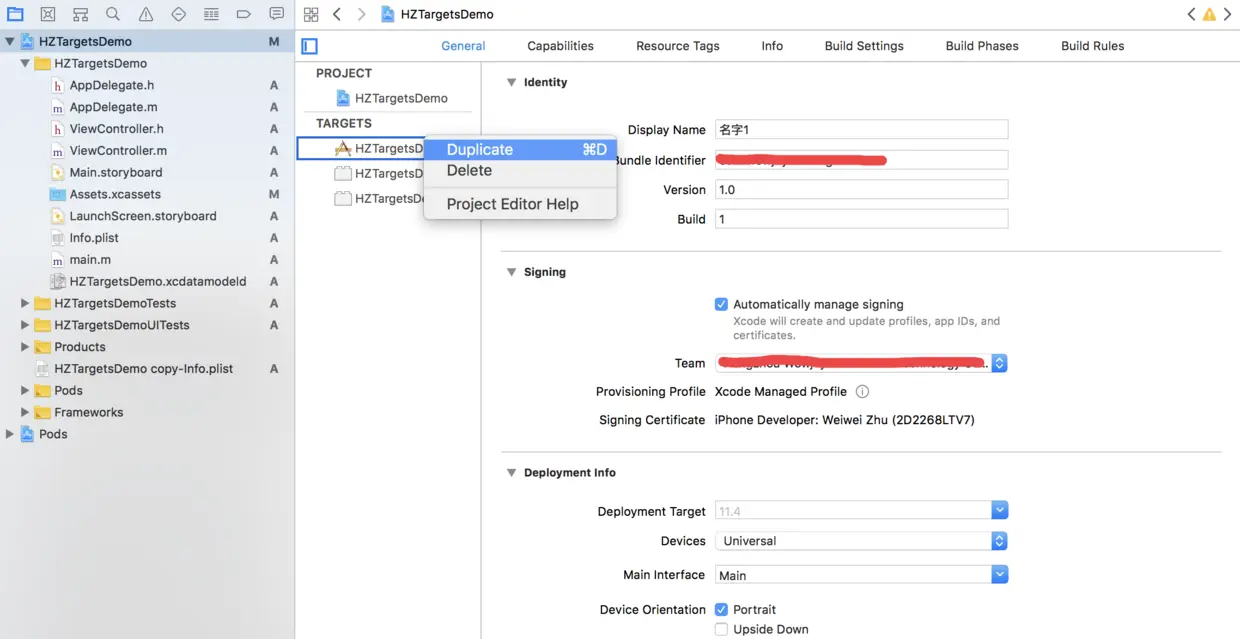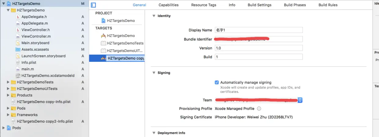 一个项目多个Target简单设置 jihuaibin 2018-07-12 285 阅读1分钟 1.copy target2.修改新target的名字3.其他的私人设置4.运行或者打包的时候,选取不同的target就会产生不同配置的包