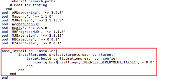 config.build_settings['IPHONEOS_DEPLOYMENT_TARGET'] ='8.0'