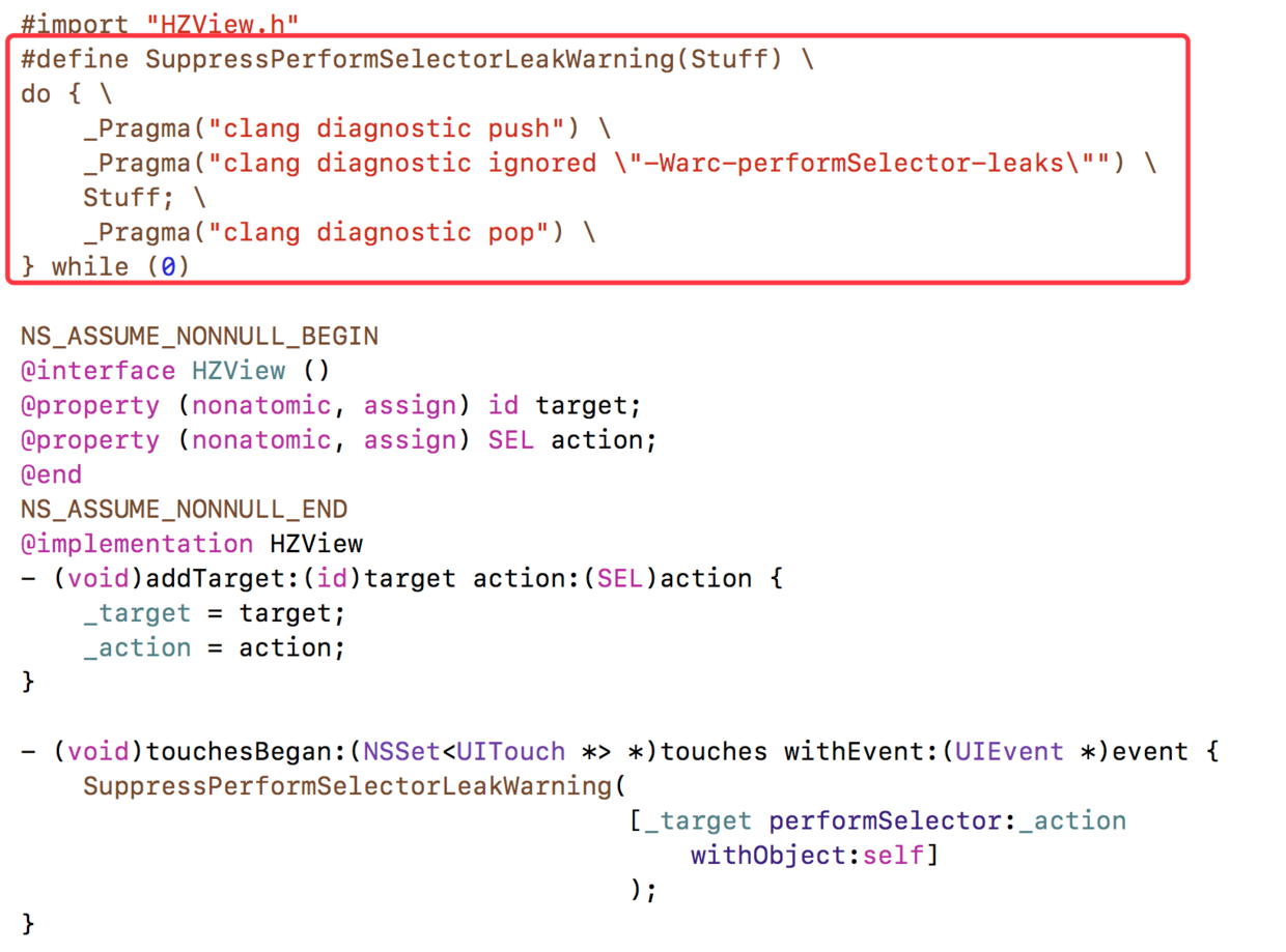_Pragma("clang diagnostic ignored \"-Warc-performSelector-leaks\"") \