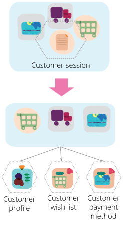Developers can incrementally extract microservices from the sticky capability, one service at time. As an example, refactor 'customer wish list' first and extract that into a new service, then refactor 'customer payment preferences' into another microservice and repeat.