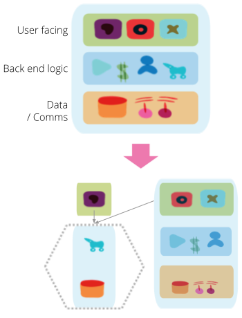 Figure 8: Decouple macro services around rich domain concepts and when ready, breakdown services to smaller domain concepts