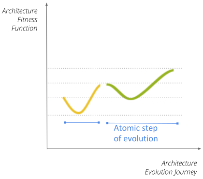 The idea of vanishing a legacy monolith into thin air by decoupling it into beautifully designed microservices is somewhat of a myth and arguably undesirable. Any seasoned engineer can share stories of legacy migration and modernization attempts that got planned and initiated with over optimism of total completion, and at best got abandoned at a good enough point in time. Long term plans of such endeavors get abandoned because the macro conditions change: the program runs out of money, the organization pivots its focus to something else or leadership in support of it leaves. So this reality should be designed in how the teams approach the monolith to microservices journey. I call this approach 'migration in atomic steps of architecture evolution', where every step of the migration should take the architecture closer to its target state. Each unit of evolution might be a small step or a large leap but is atomic, either completes or reverts. This is specially important as we are taking an iterative and incremental approach to improving the overall architecture and decoupling services. Every increment must leave us in a better place in terms of the architecture goal. Using the evolutionary architecture fitness function metaphor, the architecture fitness function after every atomic step of migration should generate a closer value to the architecture’s goal.