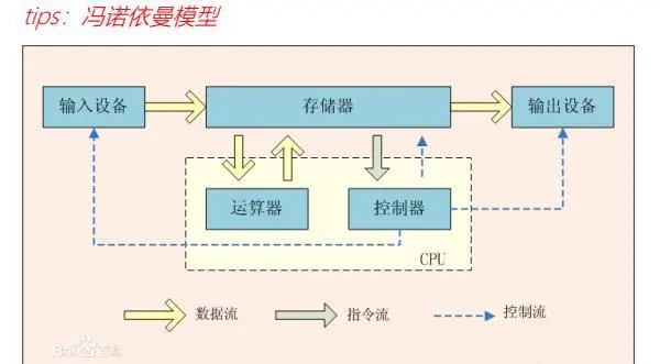 计算机的组成是有五部分完成的,分别是:输入设备,输出设备,存储器,存储器里面由运算器和控制器,有一个冯诺依曼的模型非常形象的对象计算机的组成进行了描述,不过计算机也是有数据流,指令流,控制流来进行计算的和正常运转的。如图: