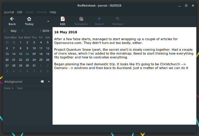总的来说,RedNotebook 是一款易于使用且灵活的程序。它需要习惯,但一旦你这样做,它是一个有用的工具。