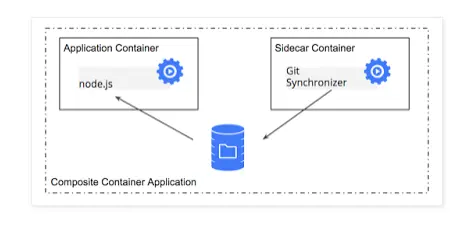 另一个例子是在web-server容器与sidecar容器共同部署时,将文件系统与git存储库同步。(我们需要注意Git同步容器的重用醒)如下图所示,应用容器知识链接到本地机器的Redis服务器上:
