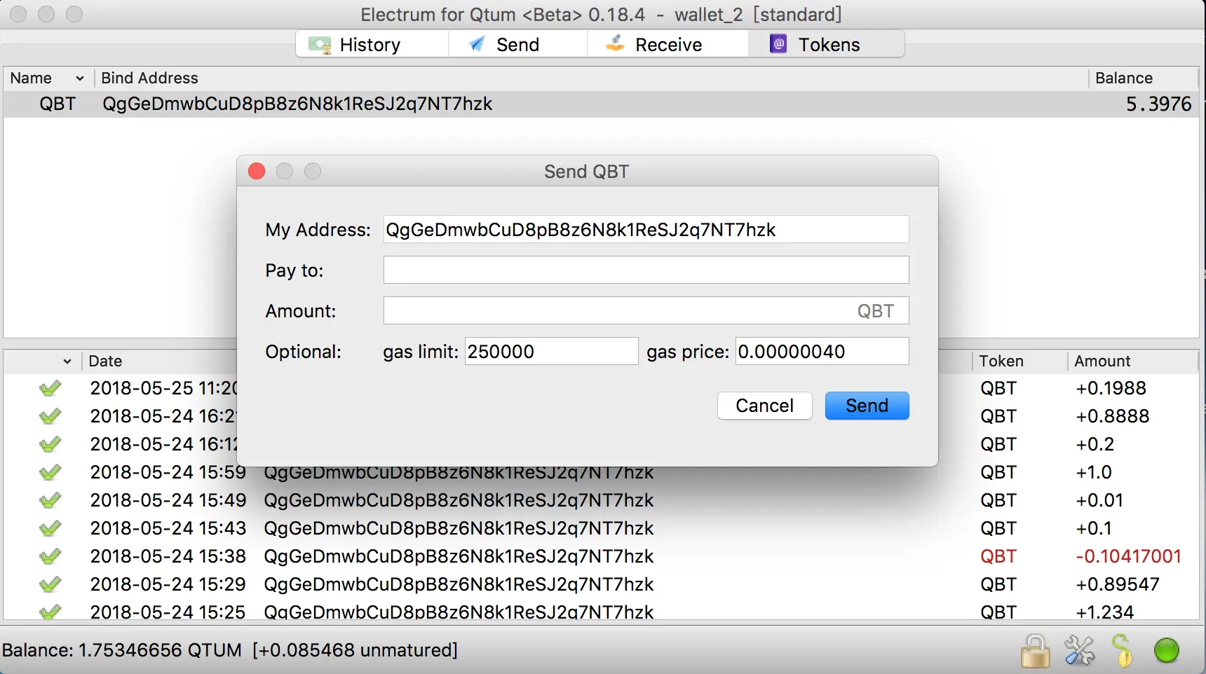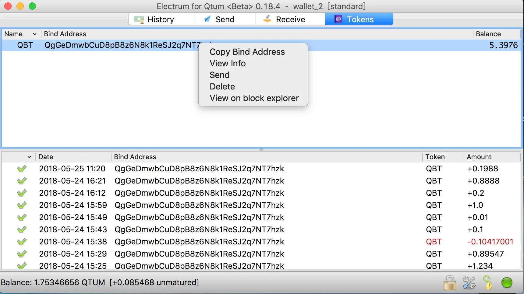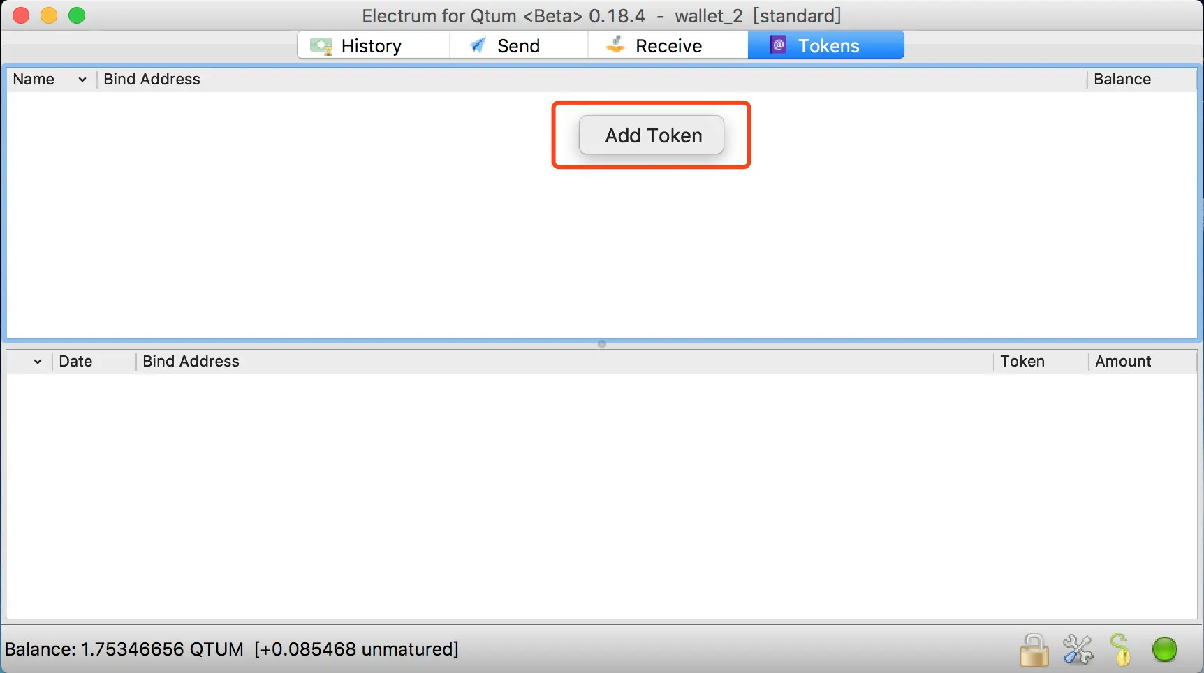 Qtum Electrum 的界面非常简洁,点击顶部的按钮可进行tab间的切换。