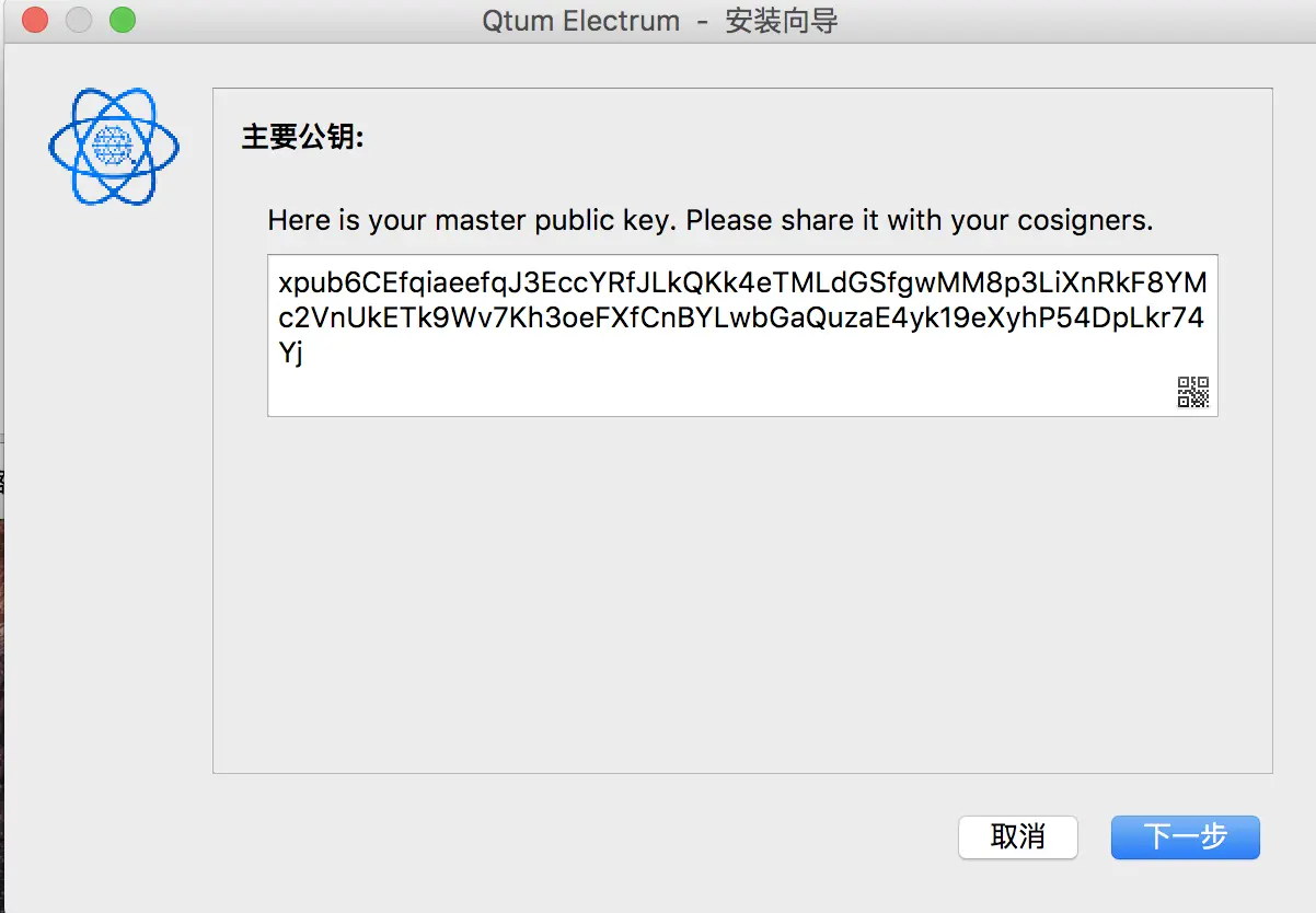 如果你想将Qtum Core全节点钱包里的地址恢复到Qtum Electrum上,请执行qtum-cli dumpwallet ~/Desktop/wallet.txt 并将其中的 extended private masterkey 拷贝出来,并选择 “Qtum Qt Core wallet compatible” 选项。