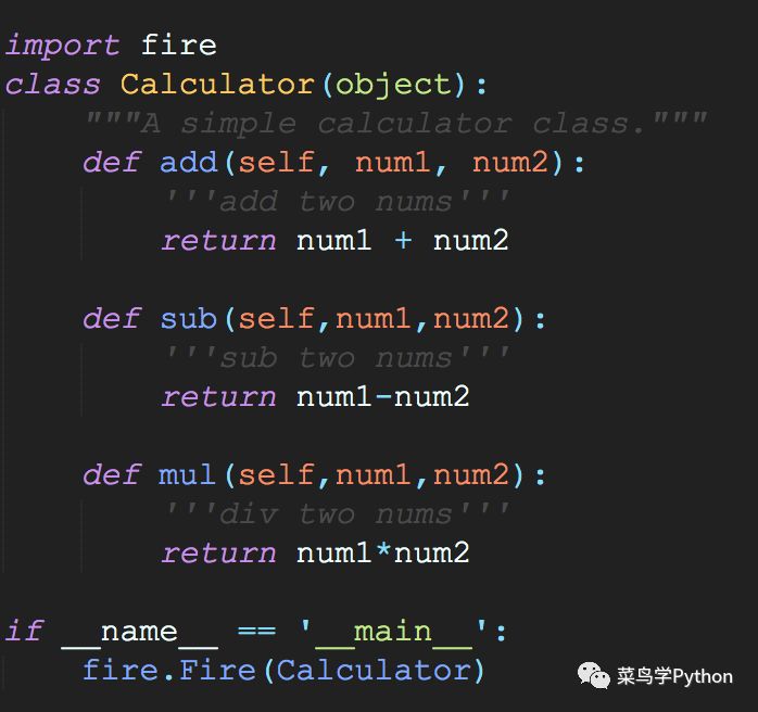 fire把那些烦人的定位参数,可选参数等等全部封装好了,你只要思考你的逻辑部分,不需要花很大的力气在熟悉argparse的用法上面。节省的大量的精力和时间。如果我们想把上面的脚本扩展,增加减法,乘法和除非的功能!只需要往Calculator类里面添加函数即可。