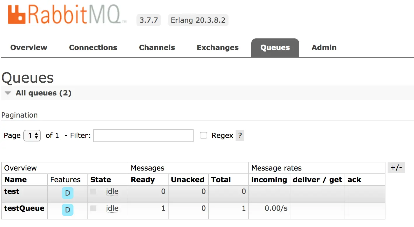 // 输出结果:my first message此时打开RabbitMQ管理平台,消息数量已经变为0:
