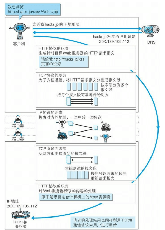 互联网相关的各类协议族的总称,协议存在各式各样的内容。从电缆的规格到IP地址的选定方法、双方建立通信的顺序,以及web页面显示需要处理的步骤,等等。