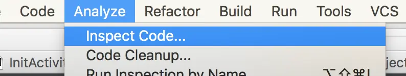 step1:Lint使用路径为『工具栏 -> Analyze -> Inspect Code…』