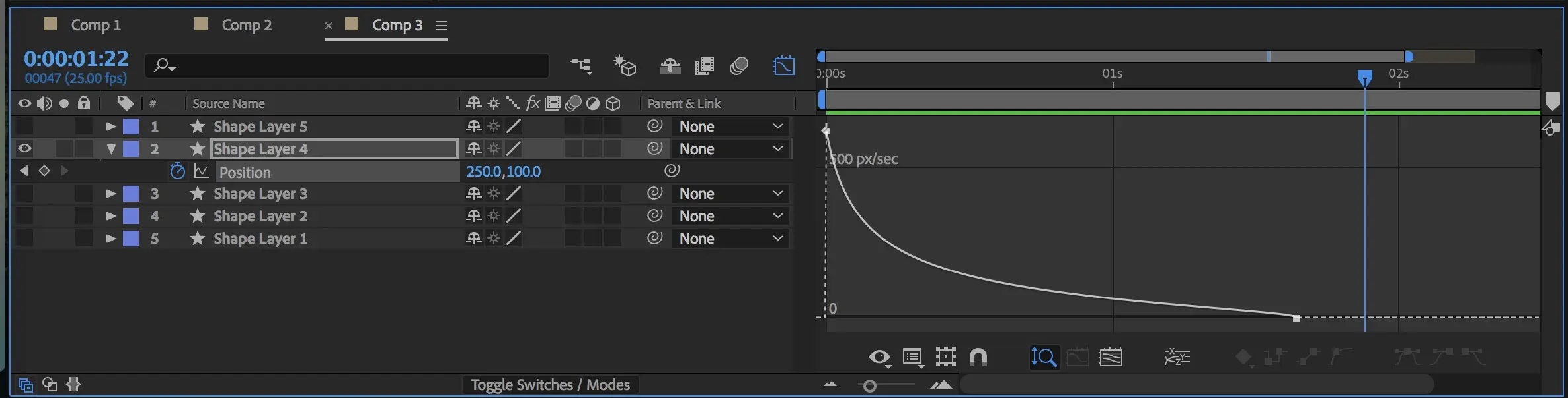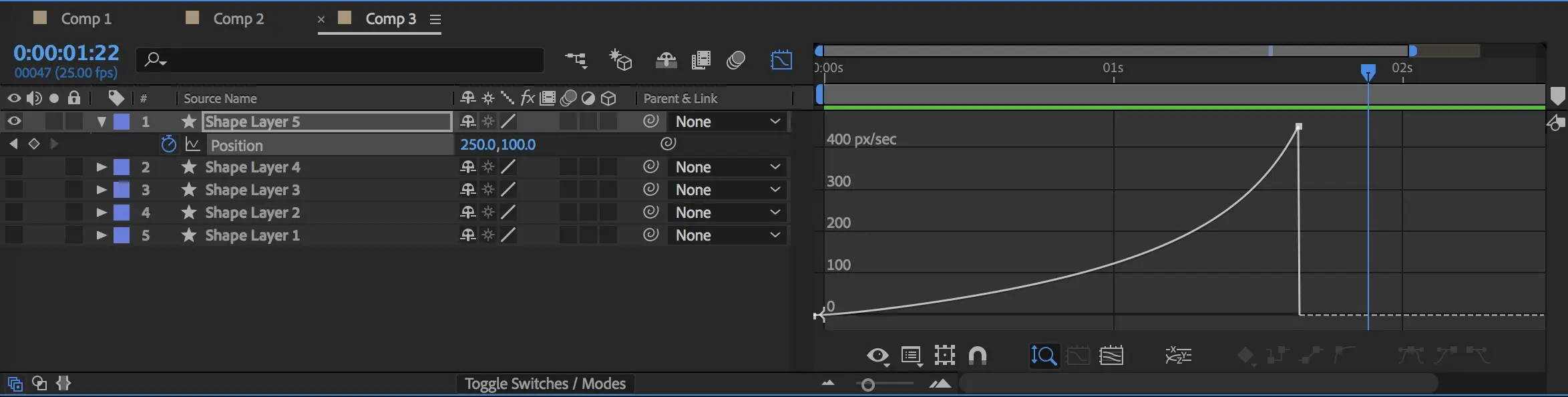 这种曲线类似于手枪打出子弹的场景,初始速度就非常快,然后逐渐缓慢停止下来。调节方式如下图。
