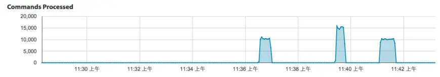 获取锁的时间明显变长,而锁的释放时间明显变短,仅是不采用sleep机制的一半。当然执行时间变成就是因为,我们在执行过程中,重新创建数据库连接,导致时间变长的。同时我们可以对比下Redis的命令执行压力情况